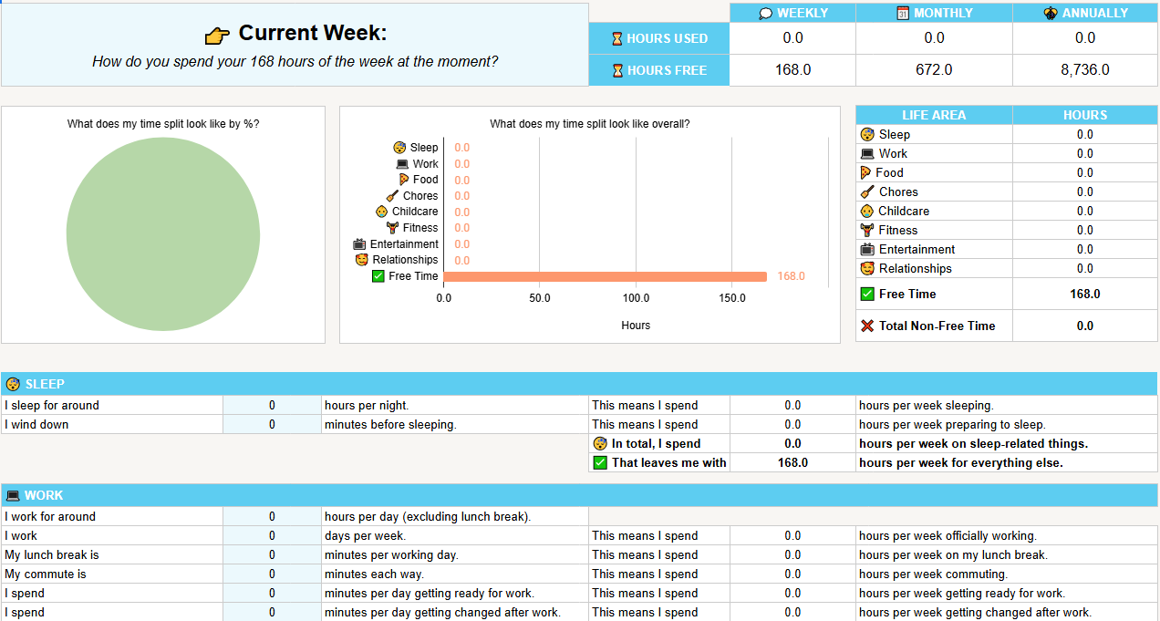 I filled out two time tracking templates - my current reality vs. my ideal week. Here are the results: